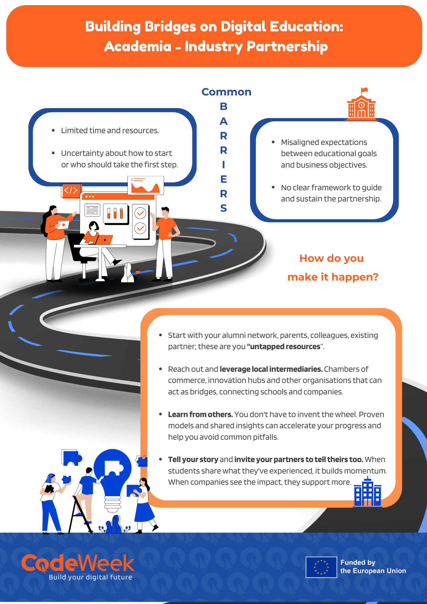- Share your story! Are you already doing something great? We want to feature it. Follow us on social media, tag your activities by using the #FutureReadyCSR and #EUCodeWeek. Your experience could inspire someone else to start!
